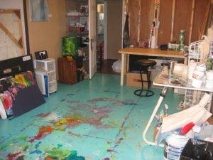 One such hurdle: my studio in the aftermath of my last bout of “productivity”.