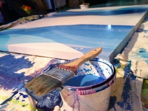 I often surprise myself with how a painting is turning out. I love when this happens! My technique involves a lot of pouring paint then walking away until it has dried. I can guess what colour the paint will dry pretty accurately (which is tough when working with acrylic glazes). But I can’t always predict how the layer I just poured will interact with the ones underneath. Again, I can hazard some educated guesses bases on past experiences and experiments. But sometimes I walk away from a painting to let it dry and magic happens.